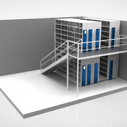 All the benefits of the single level mobile shelving system are doubled in height with the double level system. AlphaGuard is one of the only mobile shelving proposing this special feature, with easy access everywhere, for large storing capacities and make a 2 story high construction full of archiving objects.