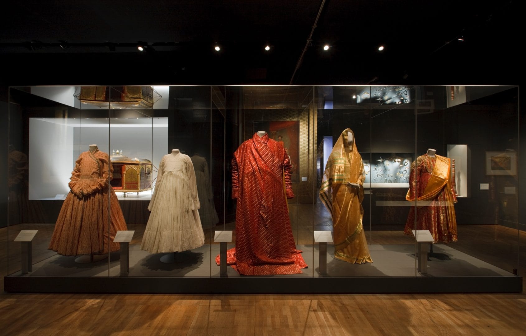 Maharaja comprised over 250 artifacts and explored the Maharajas’ rich culture. Many of the artifacts in this distinguished exhibition have never been seen in the UK before. You can explore diverse textures and materials utilized to create distinct moods to portray the exhibitions’ splendor. A ‘gold leaf’ wall, for example, depicts the luxury of India’s 18th-century royal courts. Additionally, brushed aluminum display panels and vivid pink walls reflect the Maharajas’ relationship with the European avant-garde. In the picture gallery above, you can see The Victoria and Albert museum display cases in all their glory.